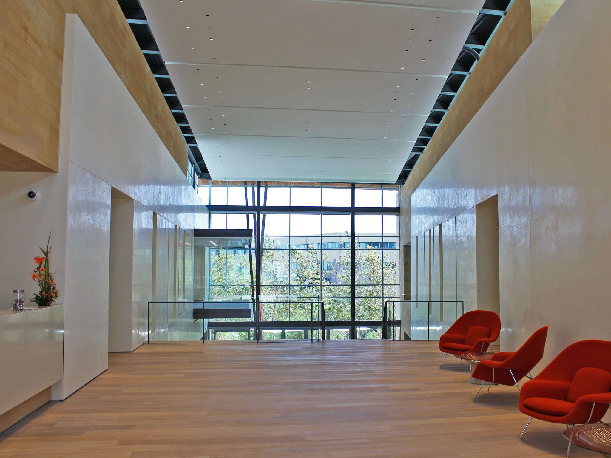 In partnership with DGA architects of San Diego, PLA created the interior of this 70,000 SF lab space for The Medicines Company’s West Coast outpost and consulted on its exterior shell’s design. The two-level structure straddles the steeply sloping site, which overlooks a canyon in Torrey Pines in a community of research and medical facilities. The lobby’s splayed geometry bifurcates the building into two separate volumes that are interconnected at the subterranean level, which houses the vivarium and BL3 Labs.